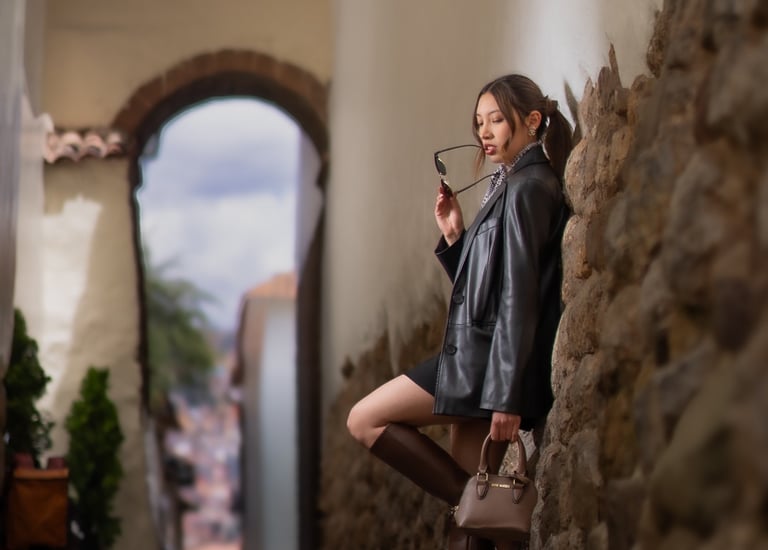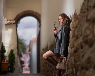 ✨ Captura tu estilo en calles coloniales, plazas históricas o rincones urbanos, usando flash e iluminación profesionalpara un acabado editorial.